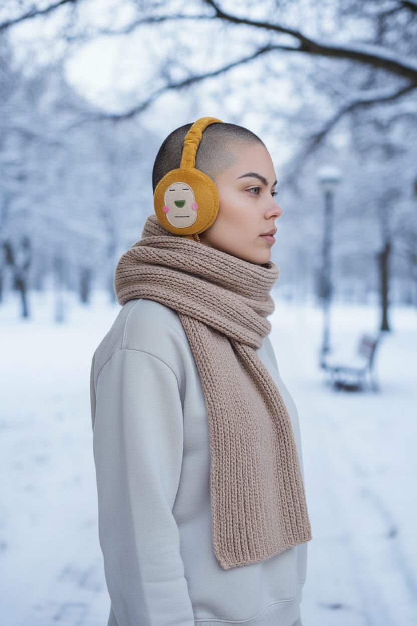片側だけにぽーぽーさんが付いている密かに可愛いポカポカ耳あてです。